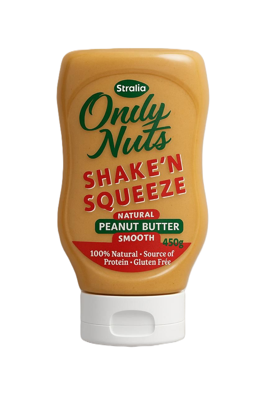 Stralia -Simply Nuts is made with 100% Surashtra origin Peanuts and a pinch of Salt. Now is a no mess squeezable format. Simply shake & squeeze on whatever you please! Peanut Butter